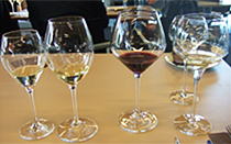 ワインはバスク政府もプロモーション支援をする特産品で、地ワインをバスク語で「チャコリ」と呼んでいます。チャコリは(赤ワインもありますが)白ワインが中心で、酸味が重要な要素だそうです。今回の視察ではビルバオにある比較的新しい(1980年代末~ワイナリーのイチャス・メンディ(Bodegas Itsasmendi)の広報の方から話を聴いたり、バスク地方の中でも優良なワインの産地として知られるリオハにある家族経営の歴史あるワイナリー(現在の当主であるJulián Ruiz氏は4代目、や大企業のワイナリー(マルケス・デ・リスカル)を訪問したりしました。